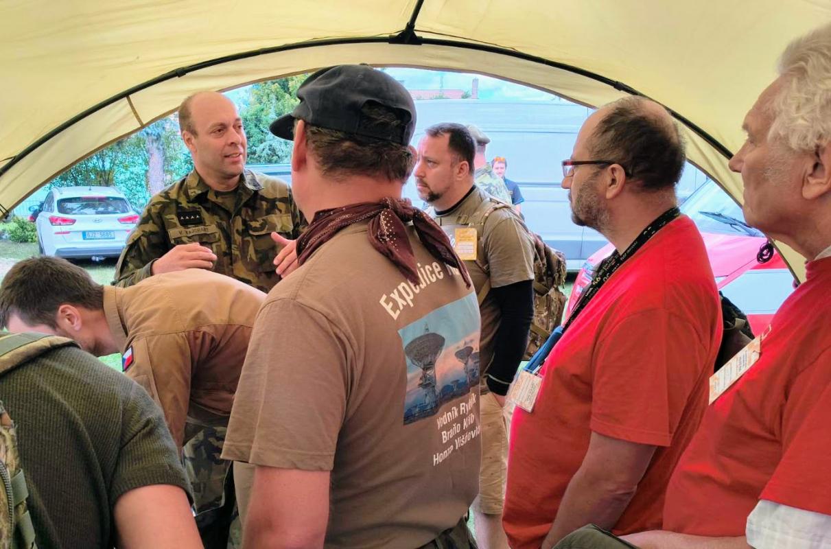 Nedílnou součástí naší expozice byla pevná spolupráce se složkami IZS a AČR. Kolegové z Hasičského záchranného sboru Pardubického kraje prezentovali svoji spojovací techniku a drony pro podporu řízení události. Nepřehlédnutelnou součástí se ale tentokrát stali naši armádní kolegové spojaři ze 4. brigády rychlého nasazení.