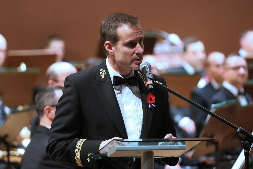 Koncert Ústřední hudby AČR zahájila skladba Johna Williamse The Olympic Spirit a kromě velitele Ústřední hudby AČR, podplukovníka Jaroslava Šípa a majora Josefa Kučery, těleso i sólisty dirigoval právě také major Paul Collis-Smith.