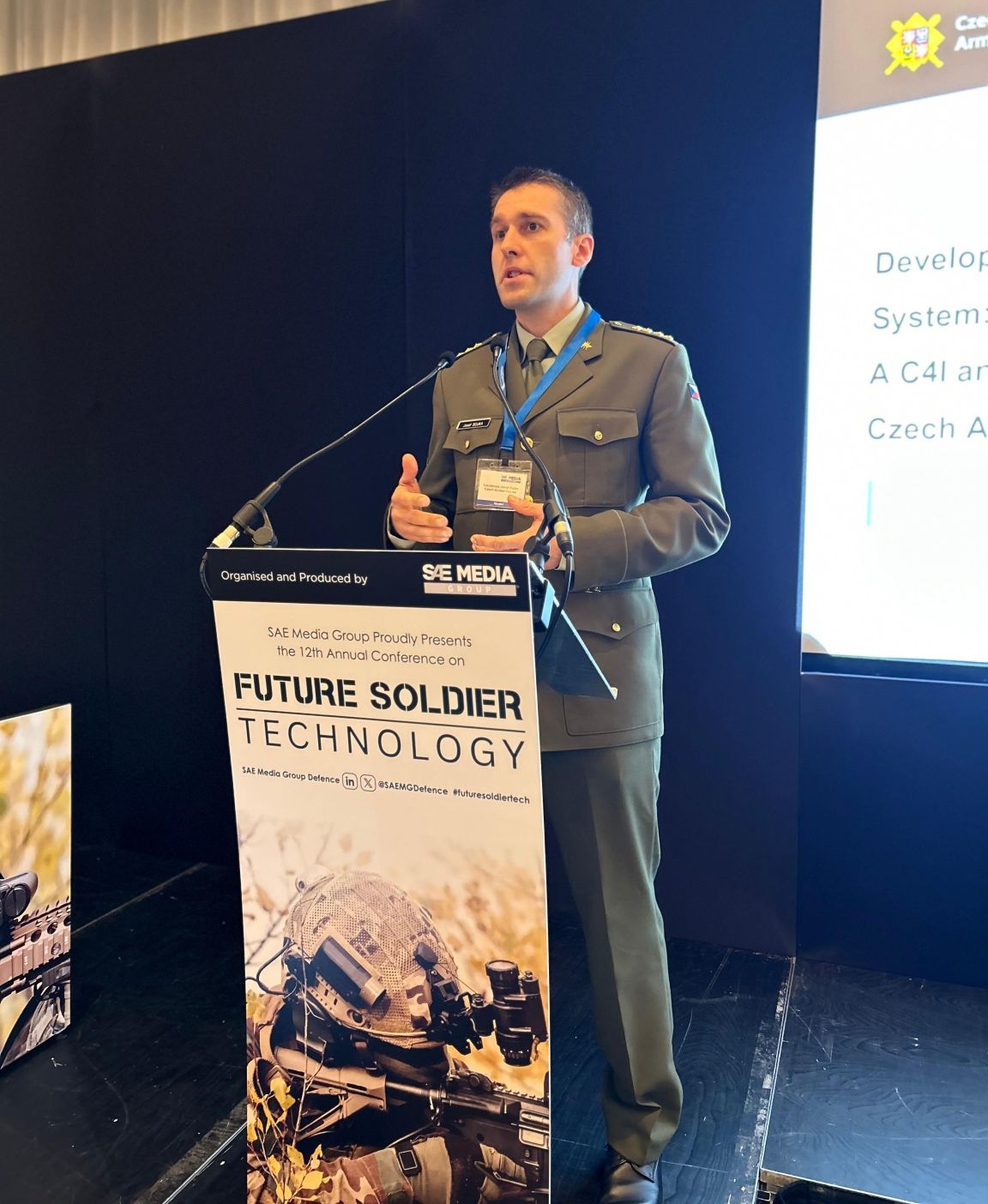 Za Armádu České republiky na konferenci vystoupil kapitán Josef Sojka z Centra nasaditelných systémů a rozvoje technologií systémů velení a řízení, který se problematice těchto systémů dlouhodobě věnuje. Během prvního dne konference představil základní architekturu připravovaného projektu kompletů v Armádě ČR. Ve své prezentaci rovněž přiblížil návaznost tohoto projektu na pořizovaná bojová vozidla pěchoty CV-90 a na systém taktické radiové komunikace české armády.