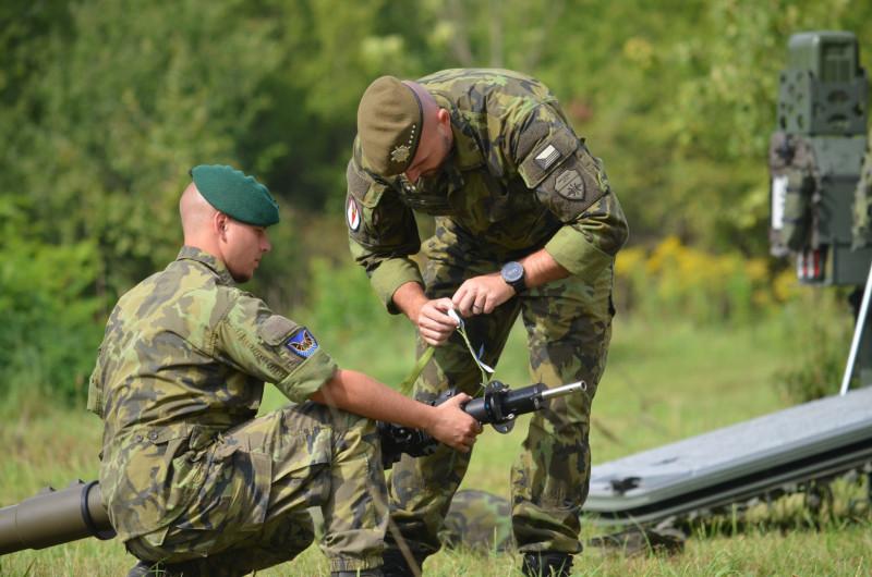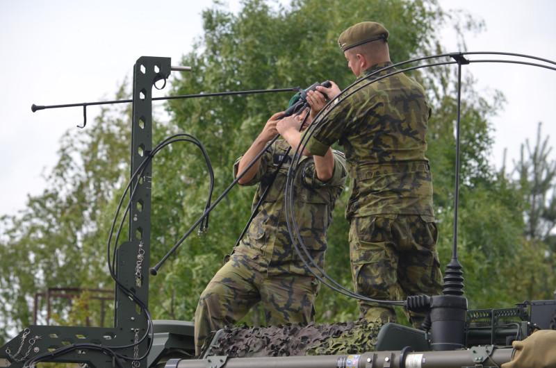 Příslušníka VeV-VA Ing. Igora Zapletala jsme zastihli u vozidla spojovacího, kde právě osádka, kterou tvoří velitel, dva operátoři a řidič, byla v plné práci, právě pod jeho vedením. „V této chvíli máme vystavěné celé vozidlo a připravené k provozu,“ vysvětlil nám více než hodinovou práci a doplnil, že je to náročné i fyzicky a podílí se na ni celá osádka. „Toto vozidlo má navíc spojovací nástavbu a právě na ni bude nyní vyškoleno 9 instruktorů pro potřeby Armády České republiky. Dnes tuto činnost cvičíme naposledy a je vidět, že už to chlapi mají poměrně dobře zvládnuté,“ hodnotí osmý den školení Ing. Igor Zapletal a my tak máme možnost být s fotoaparátem při tom, když se celá jejich výstavba zase postupně ruší a vše ukládá zpět na určené místo ve vozidle až do jeho připravenosti k odjezdu.