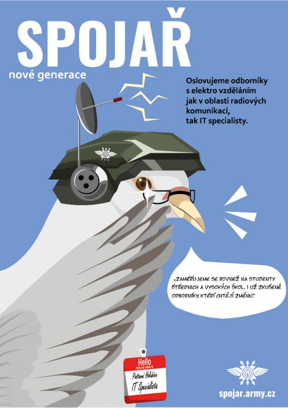 Spojovací vojsko a Spolek přátel spojovacího vojska ve spolupráci se Střední školou designu a umění, knižní kultury a ekonomiky Náhorní, oslovili studenty s výzvou o tvorbu nejzajímavějšího náborového nebo propagačního plakátu. Nyní zde můžete shlédnout 26 zajímavých výtvorů studentů a zároveň můžete svým „LIKE“ u konkrétního plakátu hlasovat o možném vítězi. Nedávejte tedy prosím svůj „LIKE“ celému souboru návrhů, ale rozklikněte si po jednotlivých návrzích a u těch prosím hlasujte svým libí/nelíbí. Pokud budete chtít připsat nějaký komentář, budeme určitě velice rádi, protože studenti zpětnou vazbu jistě ocení.