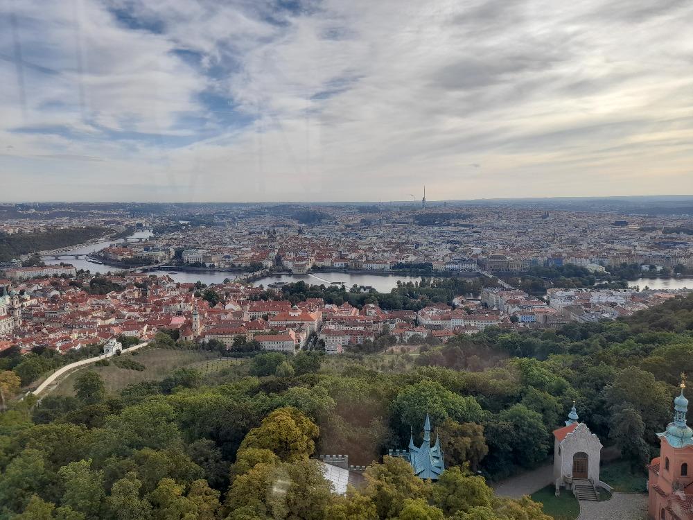 Předseda spolku přátel spojovacího vojska osobně vyběhl všech 299 schodů. Odměnou byl krásný výhled na Prahu.